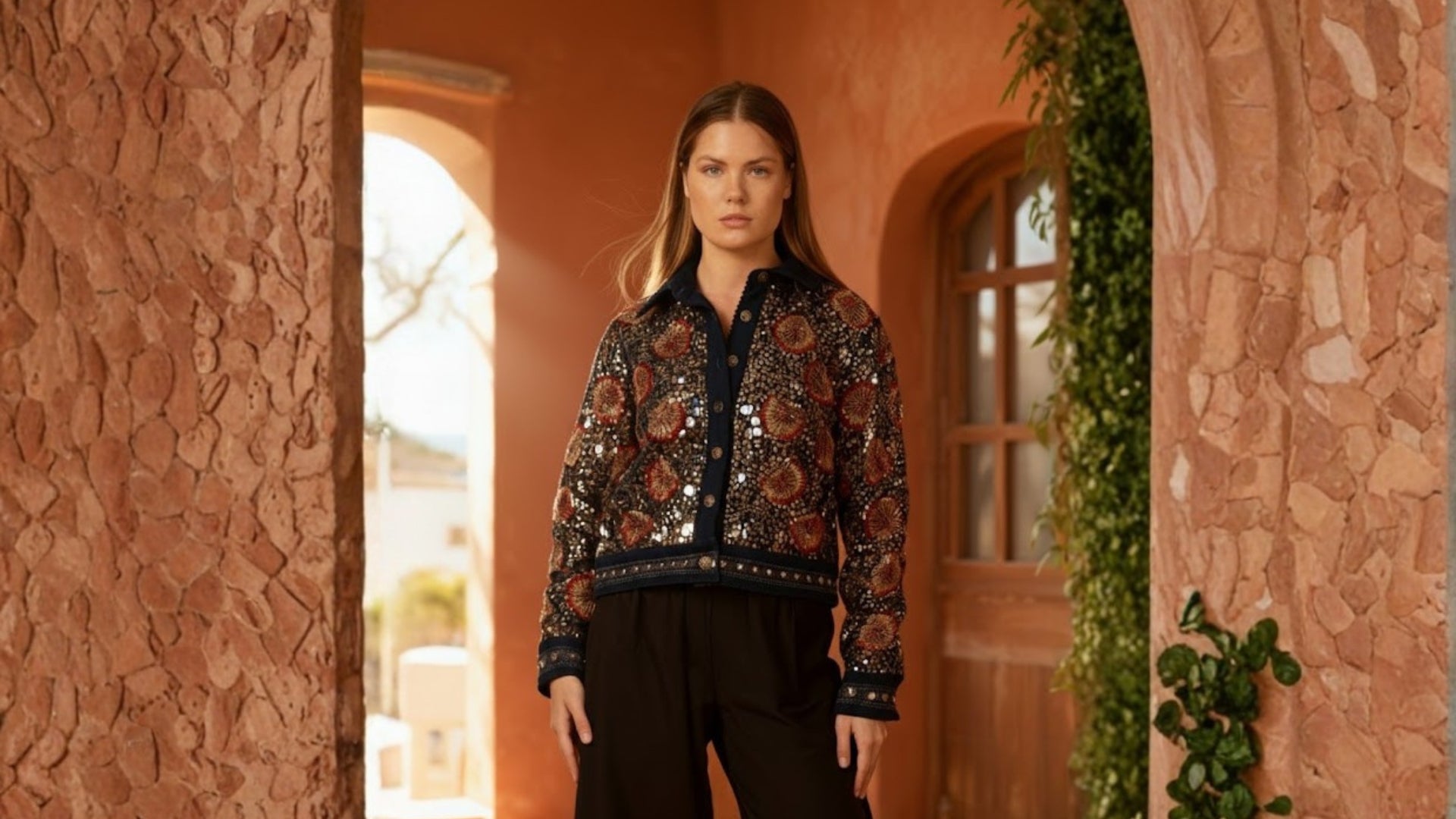 Un chaleco artesanal con bordados dorados que aporta elegancia instantánea y un toque boho-chic a cualquier conjunto, sin perder la sutileza moderna.