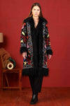 Un abrigo que irradia arte, calidez y elegancia boho. Con bordados florales en azul profundo y piel sintética suave, aporta sofisticación y encanto artesanal a cada paso.