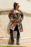 Inspirado en la riqueza de las culturas tradicionales, este abrigo mantiene un aire contemporáneo gracias a su corte recto y cinturón ajustable, que realzan la figura sin perder comodidad. Cada pieza es diferente, reflejando la autenticidad del trabajo manual y el espíritu libre de la mujer bohemia.