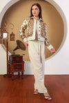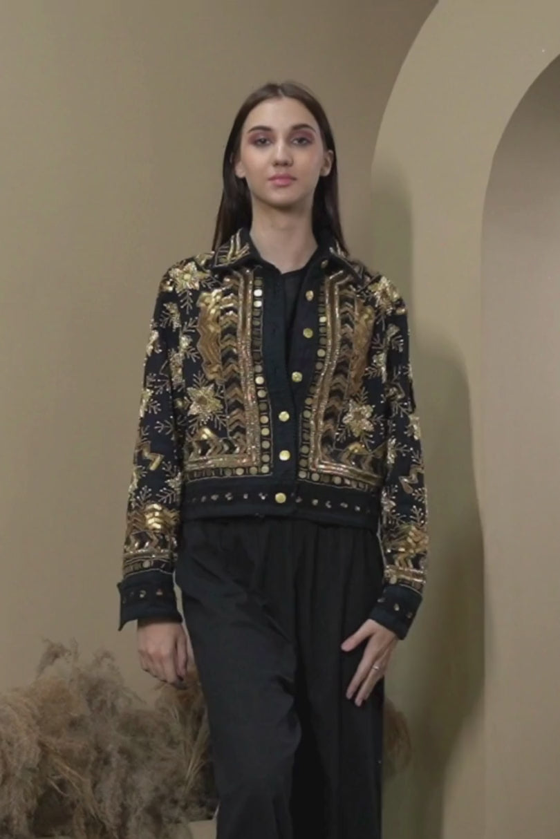Una chaqueta artesanal con bordados delicados y estructura cuidada que combina textura, brillo y equilibrio, transmitiendo elegancia natural y una sofisticación atemporal.